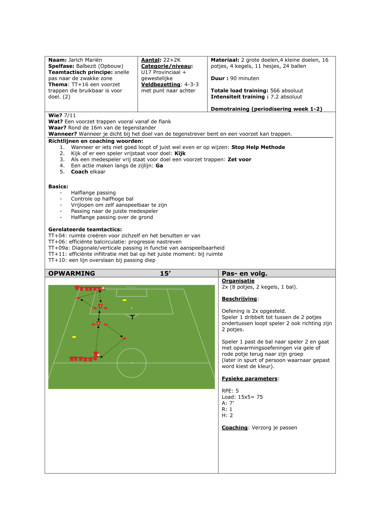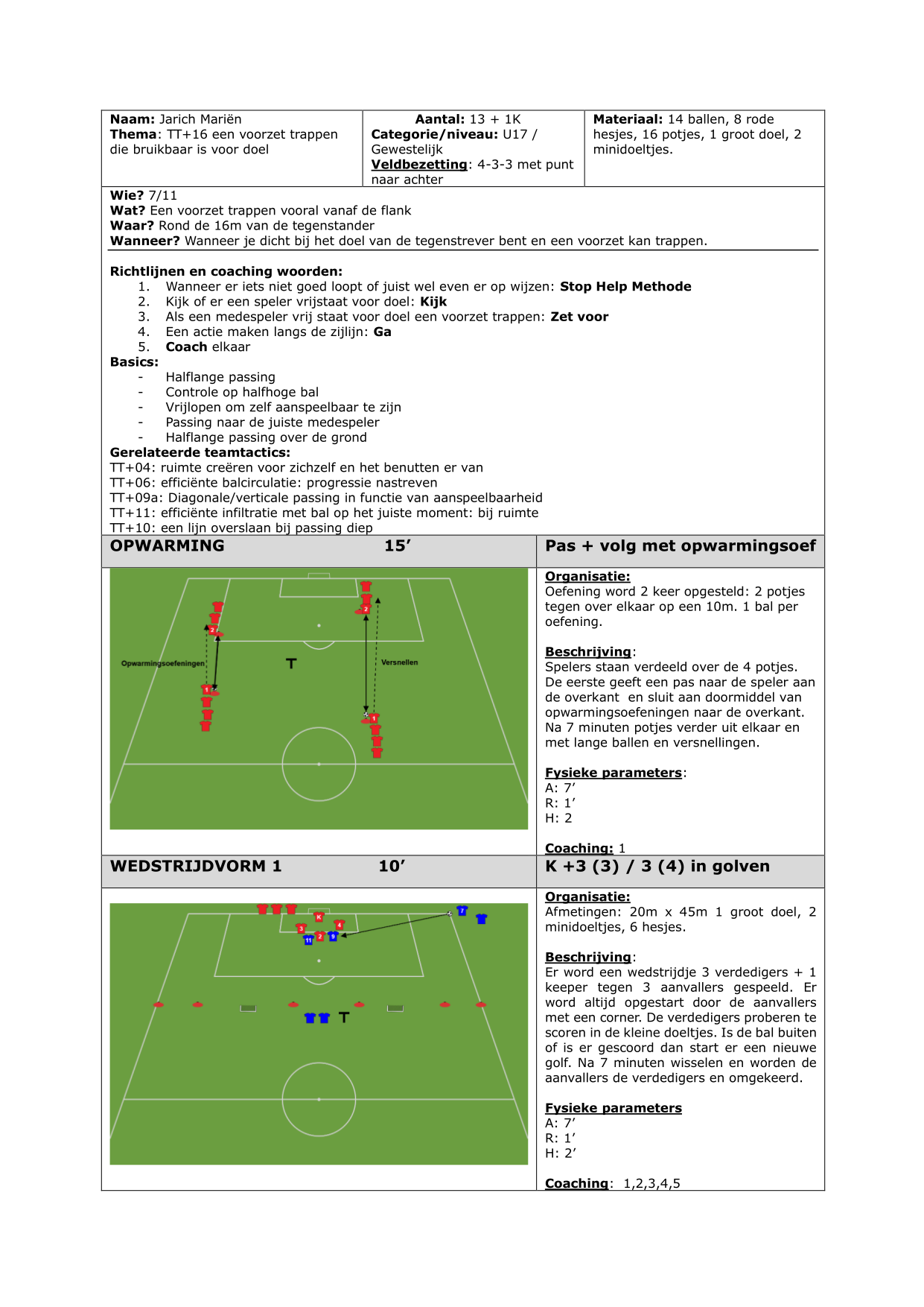 TT+16 een voorzet trappen die bruikbaar is voor doel
